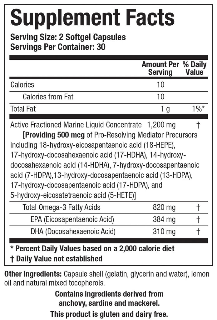 Biomega-SPM™ delivers an industry-leading 500 μg/serving of SPM precursors—specific omega-3 metabolites that serve as the foundational building blocks for Specialized Pro-Resolving Mediators (SPMs) produced naturally by the body. Utilizing a proprietary supercritical extraction with 8-stream fractionation, our comprehensive formula features 7 identified precursors to SPMs that support the body's resolution phase in the inflammatory cascade.* This advanced approach promotes joint and muscular comfort, healthy tissue repair, and balanced immune and inflammatory support*—all in an easy-to-take softgel designed for optimal patient compliance.